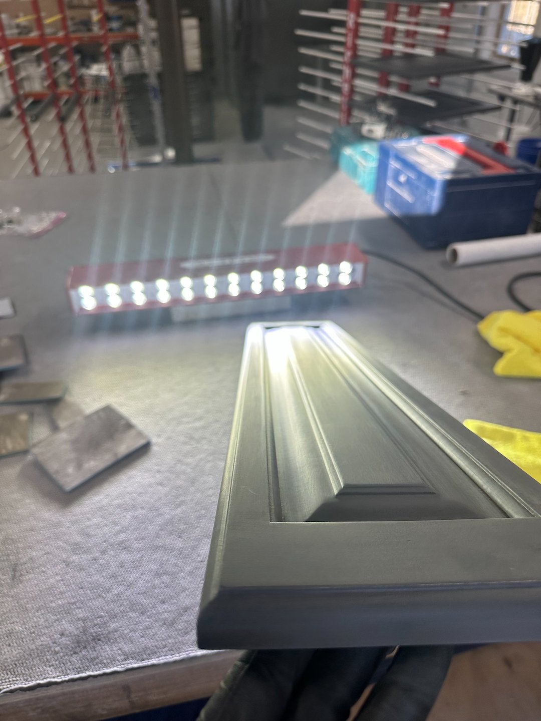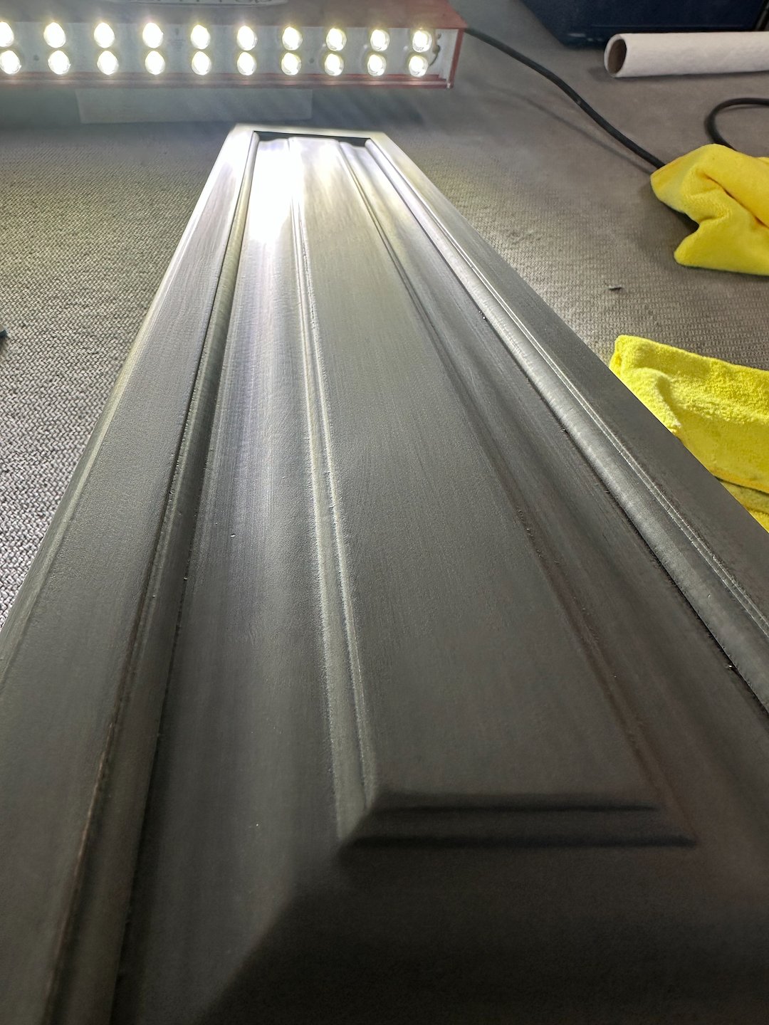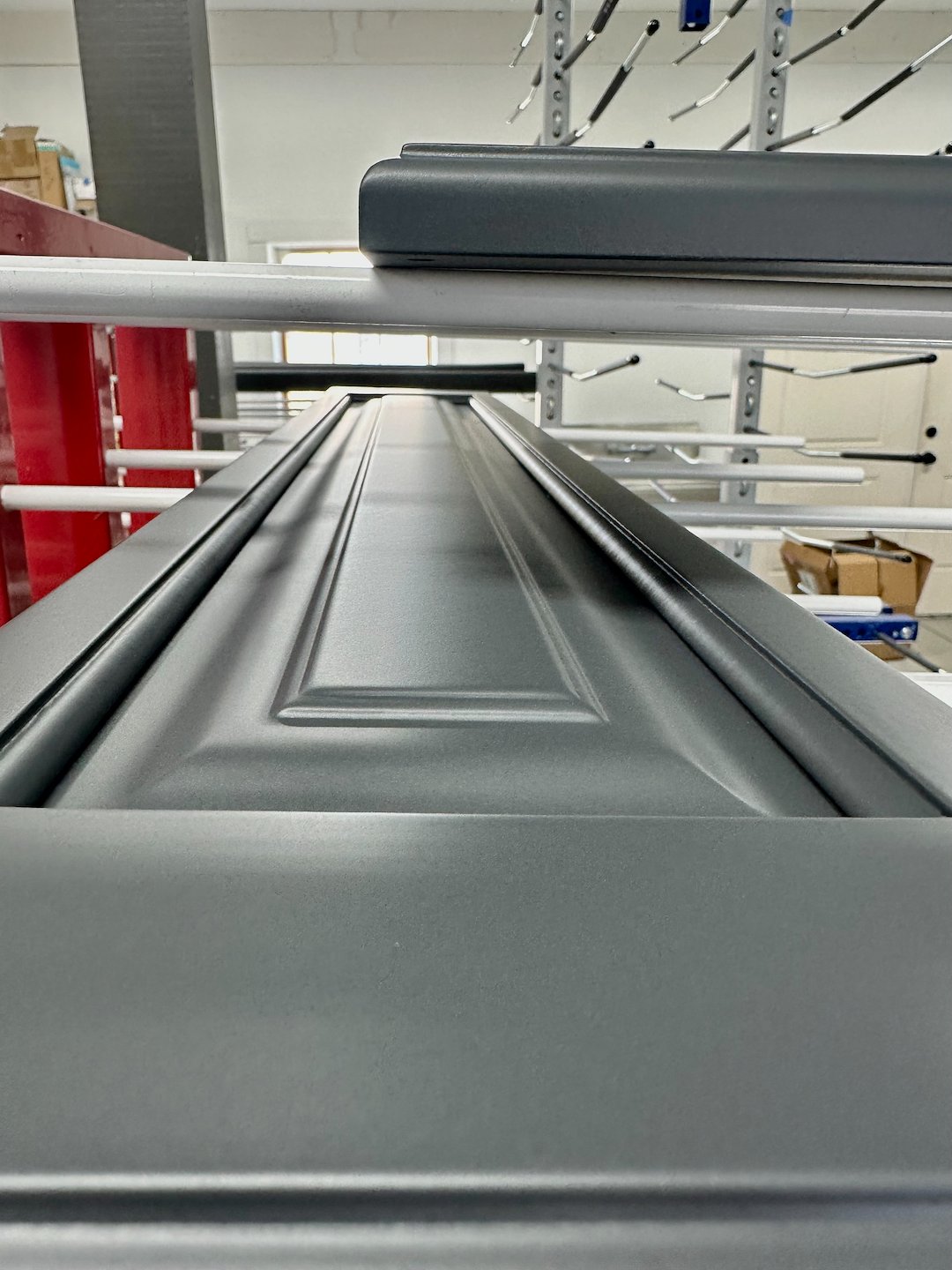The work began with our special finishing system for this dark color. Multiple coats of primer were applied first to ensure proper adhesion and to create a uniform base for the color coats. After priming, we applied even coats of the chosen color, building depth and richness without streaking or clouding.