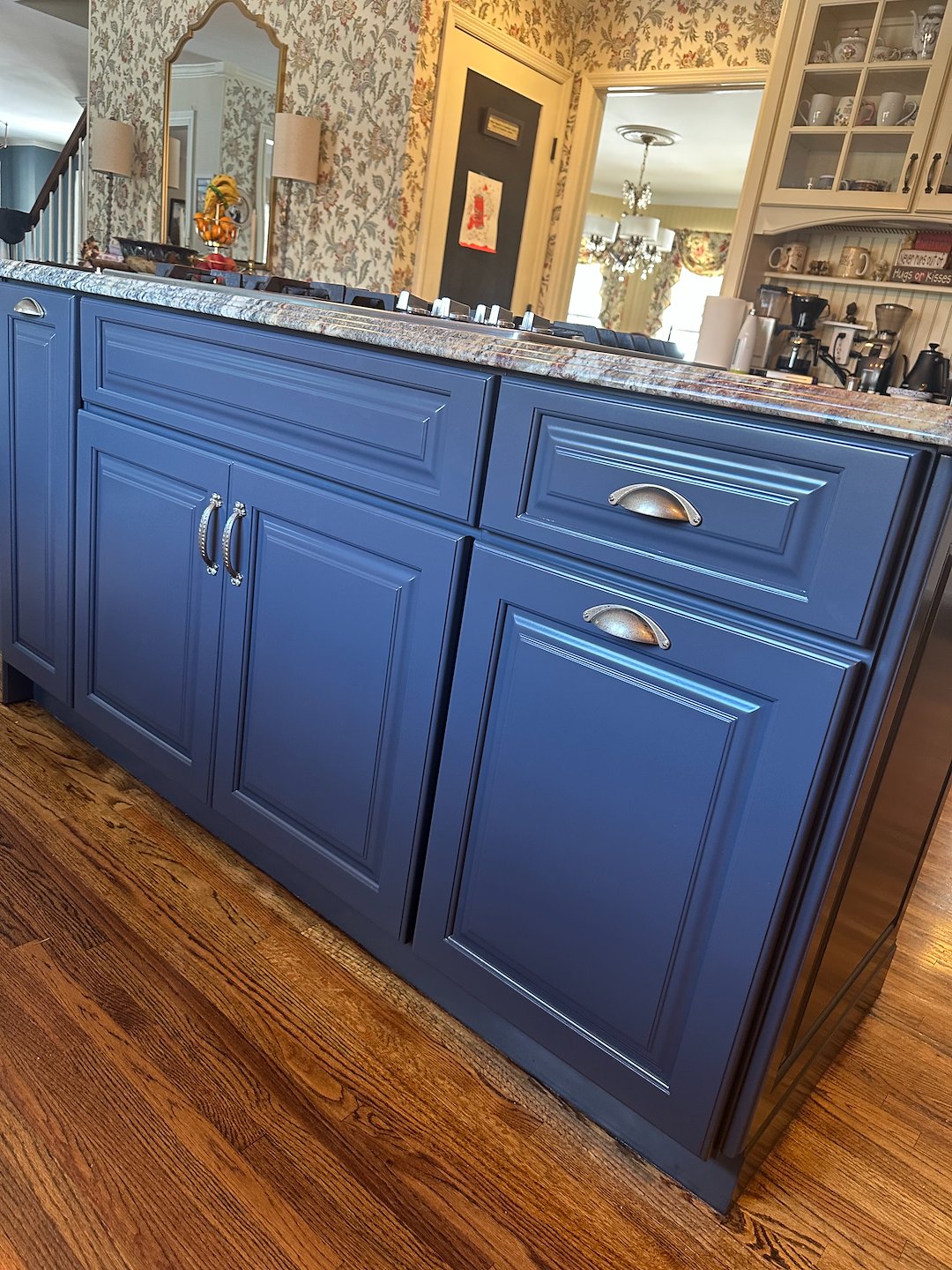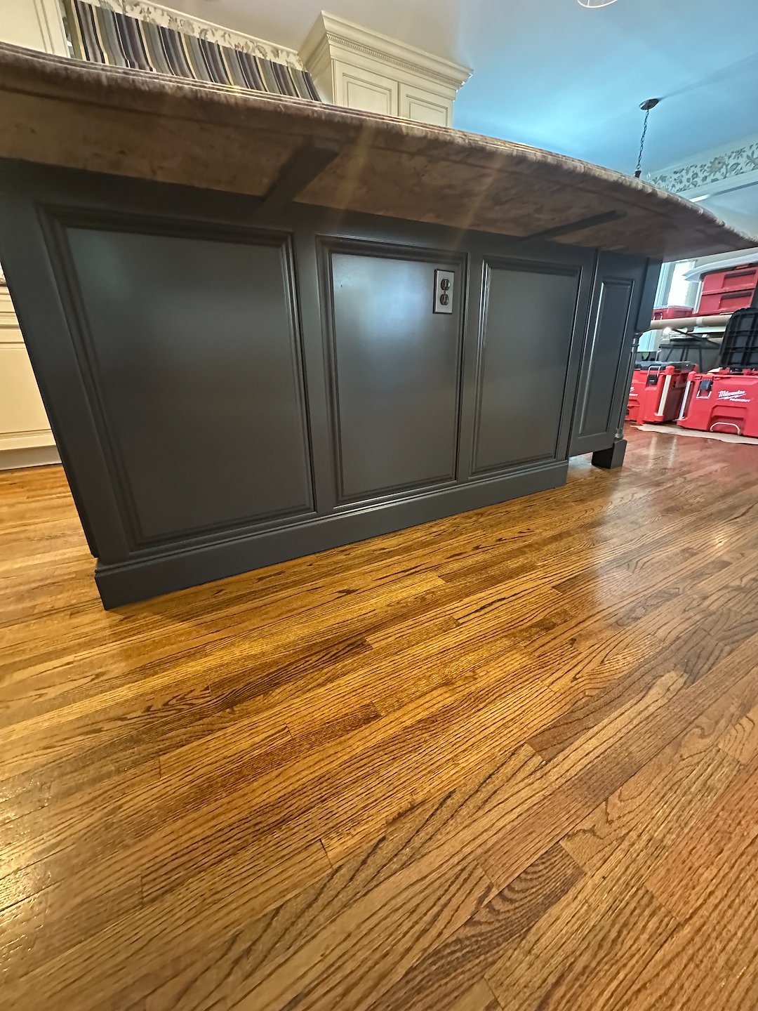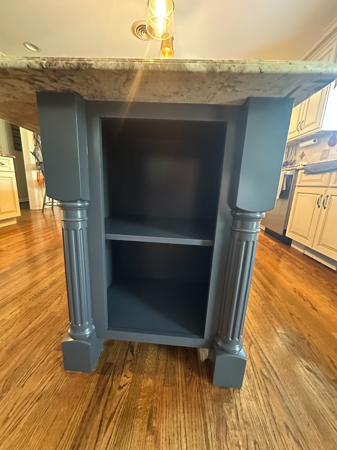 The refinishing process focused on careful preparation and controlled application. Proper priming, consistent color coats, and a final clear urethane layer were all part of the system we used to deliver an even, durable finish. Each step contributes to the long term performance of the island, especially important for a kitchen surface that sees frequent use.